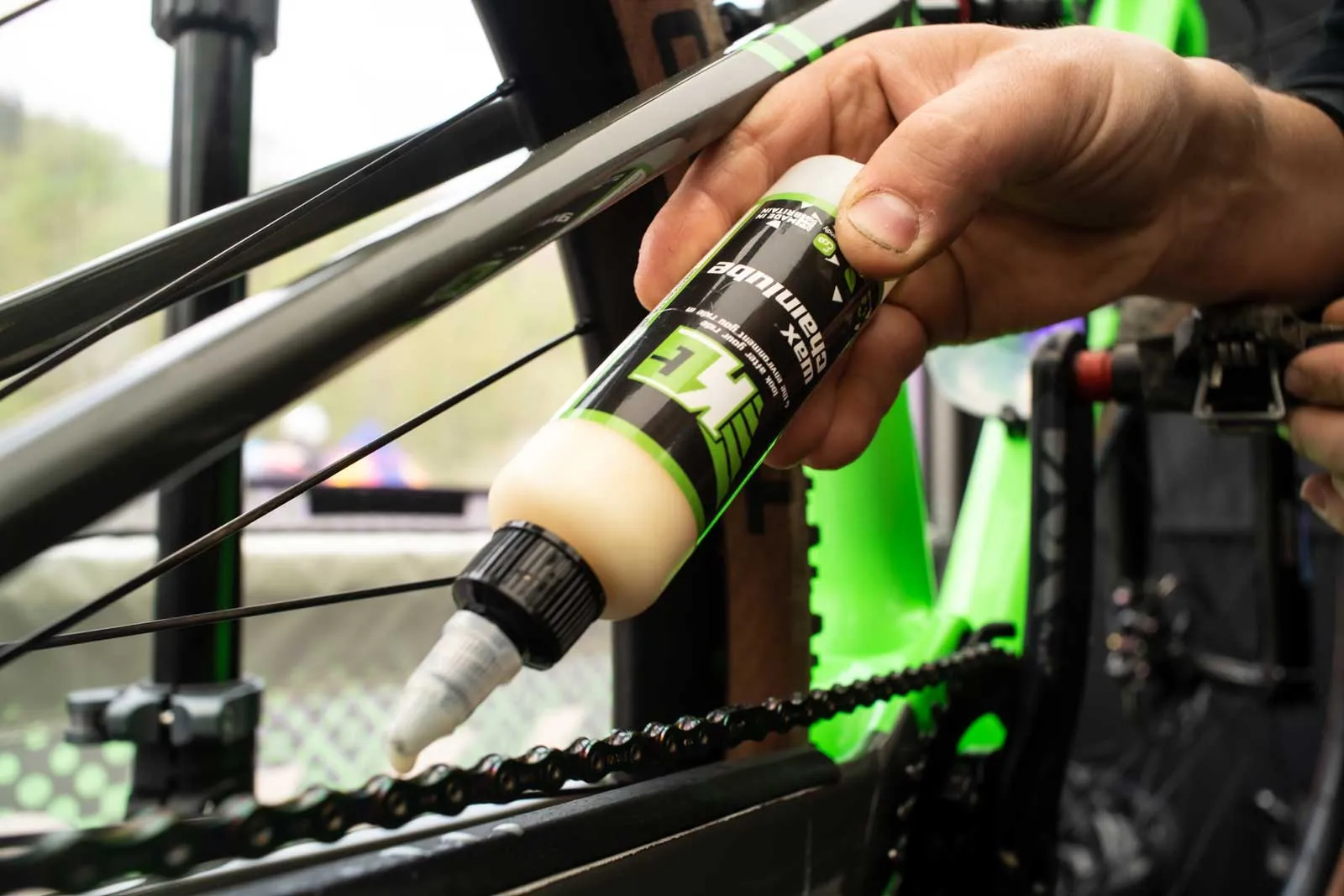 그리고 왁스 베이스 체인루브는 주로 1회 청소 후 적용하는 방식으로, 다시 체인오일을 사용하기보다 왁스를 선호하는 경우가 많습니다. 단, 왁스의 가장 큰 단점은 처음 사용할 때 체인오일을 완전히 제거해야 하며, 그 후에는 재윤활을 주기적으로 해줘야 한다는 점입니다.