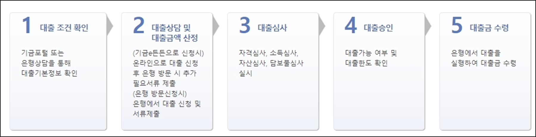 | 절차 및 방법 | 국민주택기금 수탁은행(우리, 국민, 신한, 기업, 농협) 방문 |