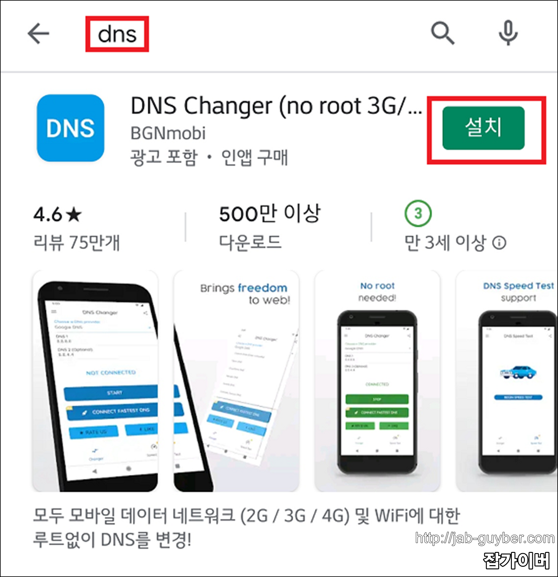 구글 플레이스토어에서 DNS를 검색해서 DNS Changer라는 앱을 다운로드합니다.